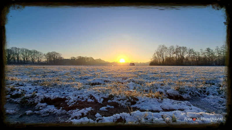 "Mooie zonsopkomst🌄bij koud, maar helder weer in de omgeving van Usselo en bij de Wissink's Möl"