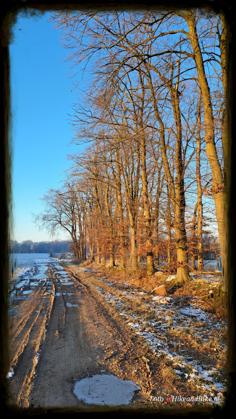 Winterse omstandigheden onderweg van Enschede-Noord naar Hengelo, helaas is de hoeveelheid sneeuw nog erg beperkt, maar de winter duurt nog lang!!!!
